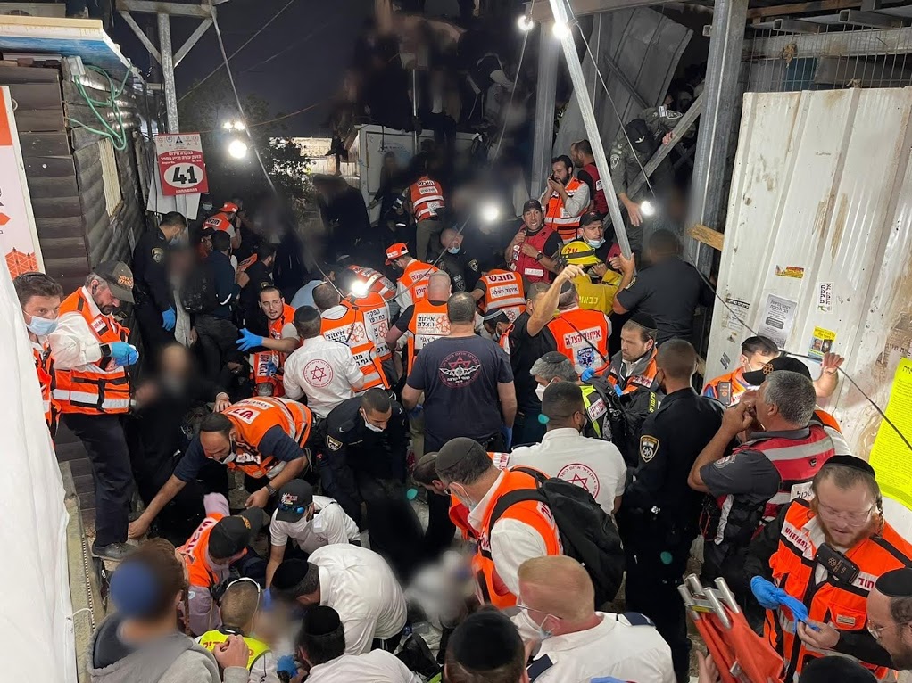 "נערוך בדיקה יסודית, רצינית ומעמיקה כדי להבטיח שאסון כזה לא ישנה. אני מבקש להכריז ביום ראשון על יום אבל לאומי. בואו נתייחד כולנו עם היגון של המשפחות ותפילה לשלום הפצועים", אמר. האסון הכבד התרחש סמוך לשעה 1:00 במתחם ההדלקה של חסידות תולדות אהרון. בתחילה דווח כי קרסה טריבונה, אולם בהמשך התברר כי המונים נרמסו בדוחק הרב ששרר במקום. על פי עדי ראייה החלה מעין "מפולת אנושית" במדרגות חלקלקות שהובילו למעבר צר – ועשרות אנשים נמחצו תחת חבריהם.